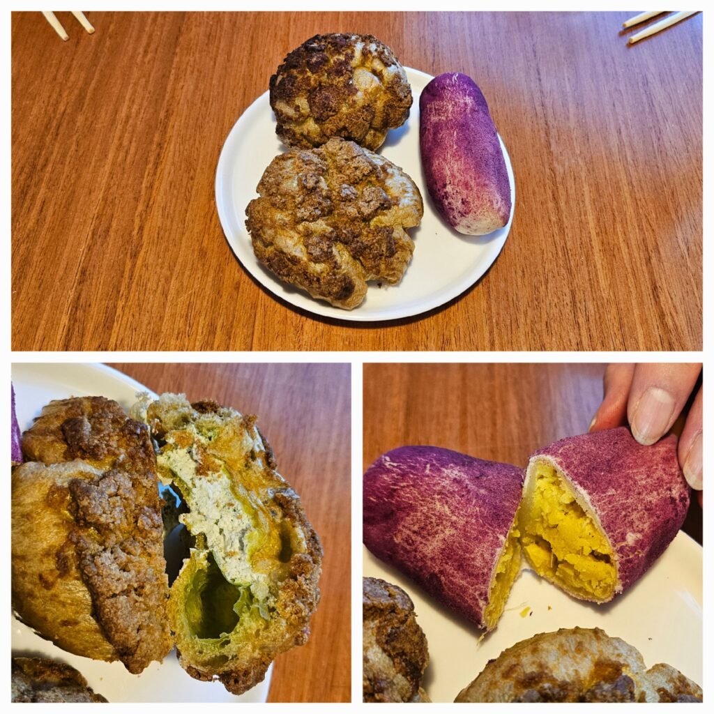 • 고구마빵: 진짜 고구마인가? 싶은 생각이 들 정도로 똑같이 생겼다. 반을 갈라보면 속에 노란 고구마가 꽉 차게 들어가 있고, 겉은 쫀득하다.